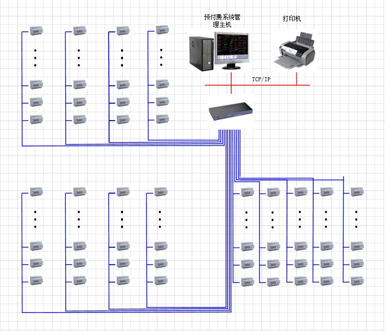 安科瑞Acrel-3200遠(yuǎn)程預(yù)付費(fèi)電能管理系統(tǒng)根據(jù)大德廣場(chǎng)實(shí)際情況進(jìn)行組網(wǎng)設(shè)計(jì),對(duì)樓層租戶加裝遠(yuǎn)程預(yù)付費(fèi)電度表,采用就地組網(wǎng),在后臺(tái)服務(wù)器位置放置一臺(tái)采集器,遠(yuǎn)程預(yù)付費(fèi)電度表通過手拉手方式接入采集器。整體網(wǎng)絡(luò)結(jié)構(gòu)如下圖所示:站控管理層、網(wǎng)絡(luò)通訊層和現(xiàn)場(chǎng)設(shè)備層。