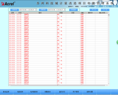 ??隨著社會(huì)的發(fā)展及電力的廣泛應(yīng)用,電力監(jiān)控系統(tǒng)已成為全國(guó)各地工程項(xiàng)目、標(biāo)志性建筑/大型公共設(shè)施等大面積多變電所用戶的必然選擇,本文介紹的Acrel-3000電能管理系統(tǒng)在蘇州科技城計(jì)量改造項(xiàng)目的應(yīng)用,可以實(shí)現(xiàn)對(duì)樓層配電的實(shí)時(shí)監(jiān)控與電能管理,并且對(duì)于預(yù)付費(fèi)售電情況進(jìn)行實(shí)時(shí)報(bào)警,通知商鋪及時(shí)繳費(fèi),不僅能顯示回路用電狀況,還具有網(wǎng)絡(luò)通訊功能,可以與串口服務(wù)器、計(jì)算機(jī)等組成電力監(jiān)控系統(tǒng)。系統(tǒng)實(shí)現(xiàn)對(duì)采集數(shù)據(jù)的分析、處理,實(shí)時(shí)顯示變電所內(nèi)各配電回路的運(yùn)行狀態(tài),對(duì)分合閘、負(fù)載越限具有彈出報(bào)警對(duì)話框及語(yǔ)音提示,并生成各種電能報(bào)表、分析曲線、圖形等,便于電能的遠(yuǎn)程抄表以及分析、研究。該系統(tǒng)運(yùn)行安全、可靠、穩(wěn)定,為變電所用戶解決用電問(wèn)題提供了真實(shí)可靠的依據(jù),取得了較好的社會(huì)效益。