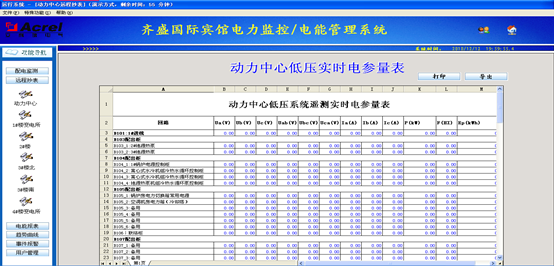 實(shí)時(shí)電參量:低壓各回路三相電流、電壓、功率、頻率、電能數(shù)據(jù)等查詢、打印及導(dǎo)出。