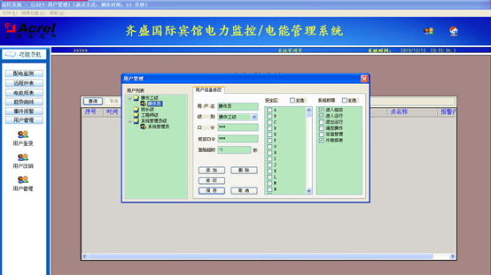 用戶權(quán)限管理:用戶可配置不同用戶權(quán)限,增減用戶,修改密碼等。