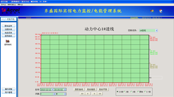 該系統(tǒng)實(shí)施后,實(shí)現(xiàn)了各類用電設(shè)備的一次系統(tǒng)圖顯示、各回路實(shí)時(shí)電參量遙測(cè)、重要回路電能報(bào)表、以及進(jìn)線回路的負(fù)荷用電趨勢(shì)、重要回路的分合閘報(bào)警、用戶權(quán)限管理等功能,圖表分別見圖2、3、4、5、6、7。