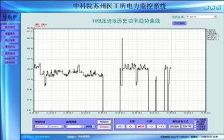 負荷趨勢曲線功能主要負責定時采集進線及重要回路電流和功率負荷參量,自動生成運行負荷趨勢曲線的,方便用戶及時了解設備的運行負荷狀況。點擊畫面相應按鈕或菜單項可以完成相應功能的切換;可以查看實時趨勢曲線或歷史趨勢線;對所選曲線可以進行平移、縮放、量程變換等操作,幫助用戶進線趨勢分析和故障追憶。