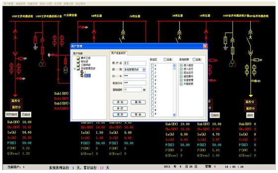可根據(jù)買方要求添加和刪除軟件的用戶數(shù)量和設(shè)置用戶的權(quán)限。針對不同級別的用戶,設(shè)置不同的權(quán)限組,防止因人為誤操作給生產(chǎn),生活帶來的損失,實現(xiàn)配電系統(tǒng)的安全,可靠運行。