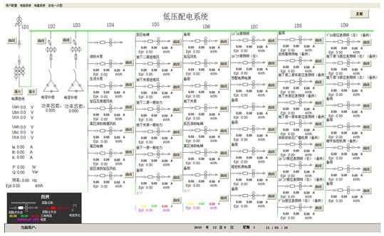 實時顯示低壓進線回路,電容補償、出線回路的合分閘情況,實時刷新負載、電流、電壓、功率等的實時值。