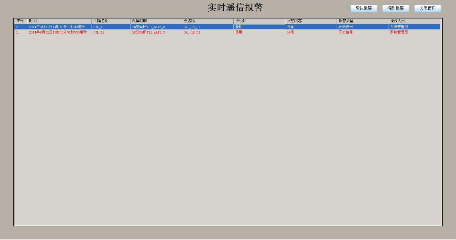 主要用于查看歷史報警信息;幫助用戶進(jìn)行事故查詢與追憶;支持歷史查詢,打印等功能。實時報警信息會即時彈出,提醒用戶所進(jìn)行的操作。并對所有操作具有自動事件記錄功能。如圖6所示。