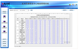 參數(shù)抄表功能,主要對(duì)低壓各出線回路的電參數(shù)進(jìn)線查詢。支持任意時(shí)刻電參數(shù)查詢,具備數(shù)據(jù)導(dǎo)出和報(bào)表打印等功能。該報(bào)表查詢百事亞洲研發(fā)中心配電所變壓器進(jìn)出線各低壓回路的電參數(shù),主要包括:三相電流、有功功率和有功電度。該報(bào)表各回路名稱和數(shù)據(jù)庫關(guān)聯(lián),方便用戶修改回路名稱。如下圖所示