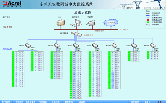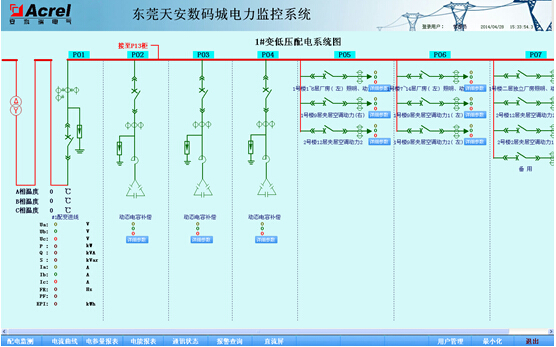在當(dāng)今配電設(shè)施的應(yīng)用中,商業(yè)廣場(chǎng)項(xiàng)目的配電安全性至關(guān)重要,本文介紹的Acrel-2000電力監(jiān)控系統(tǒng)在東莞天安數(shù)碼城的應(yīng)用,可以實(shí)現(xiàn)對(duì)變電所配電柜供配電回路用電的實(shí)時(shí)監(jiān)控,不僅能顯示回路用電狀況,還具有網(wǎng)絡(luò)通訊功能,可以與計(jì)算機(jī)組成電力監(jiān)控系統(tǒng)。系統(tǒng)實(shí)現(xiàn)對(duì)采集數(shù)據(jù)的分析、處理,實(shí)時(shí)顯示變電所內(nèi)各配電回路的運(yùn)行狀態(tài),對(duì)負(fù)載越限具有彈出報(bào)警對(duì)話框、語音提示,并生成各種電能報(bào)表、分析曲線、圖形等,便于電能的遠(yuǎn)程抄表以及分析、研究,該系統(tǒng)運(yùn)行安全、可靠、穩(wěn)定,為商業(yè)廣場(chǎng)項(xiàng)目解決用電問題提供了真實(shí)可靠的依據(jù),取得了較好的經(jīng)濟(jì)效益。