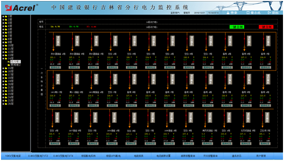 本項(xiàng)目的電力監(jiān)控系統(tǒng),可以實(shí)現(xiàn)對(duì)行內(nèi)高、低壓配電回路的實(shí)時(shí)監(jiān)控,有利于電能管理。另一方面,電力監(jiān)控系統(tǒng)不僅能夠準(zhǔn)確的表示出回路的用電狀況,它還具備網(wǎng)絡(luò)通訊等功能,能夠與計(jì)算機(jī)、串口服務(wù)器等設(shè)備進(jìn)行組合,及時(shí)的顯示行內(nèi)各個(gè)配電回路的運(yùn)作狀態(tài),當(dāng)行內(nèi)電力系統(tǒng)的負(fù)載越標(biāo)時(shí),電力監(jiān)控系統(tǒng)能夠迅速報(bào)警,發(fā)出語(yǔ)音提示。另外,電力監(jiān)控系統(tǒng)還能夠生成報(bào)表、曲線圖等統(tǒng)計(jì)信息,便于有關(guān)人員分析行內(nèi)各部分的用電狀況,使行內(nèi)的用電活動(dòng)更加安全,可以通過(guò)監(jiān)控軟件單獨(dú)或者批量分合樓層負(fù)載,使行內(nèi)用電更加靈活,從而保證行內(nèi)人員的生命安全,提高工作人員的工作效率。