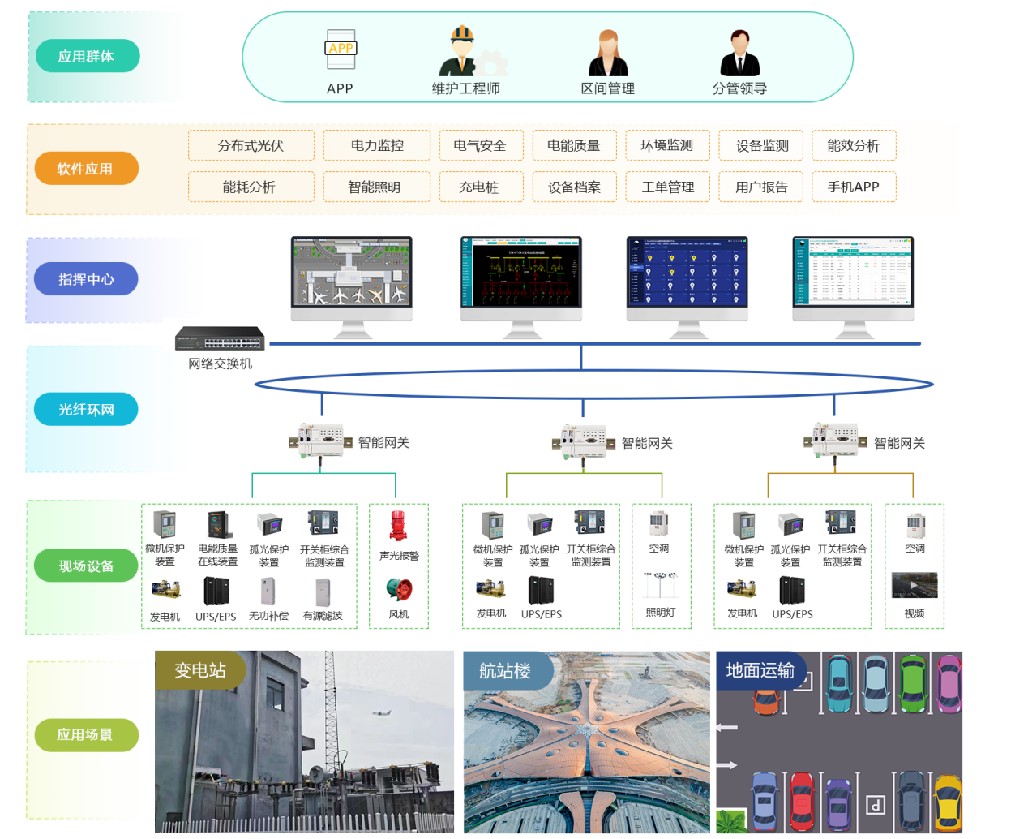 民航機(jī)場(chǎng)智慧能源管平臺(tái)解決方案對(duì)民航機(jī)場(chǎng)范圍內(nèi)變電站內(nèi)的高低壓配電設(shè)備 、 發(fā)電機(jī)、變壓器 、UPS、EPS 、廣場(chǎng)照明 、 室內(nèi)照明 、通風(fēng)及排水等機(jī)電設(shè)備進(jìn)行實(shí)時(shí)分布式監(jiān)控和集中管理 , 實(shí)現(xiàn)無人值守 , 確保高速公路安全暢通 , 提高 自動(dòng)化管理水平 , 降低機(jī)電設(shè)備的運(yùn)行維護(hù)成本 。