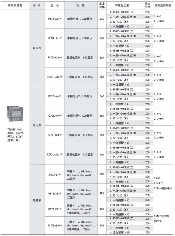 PZ系列交流檢測(cè)儀表