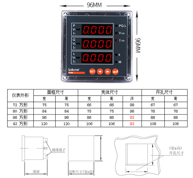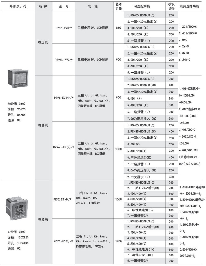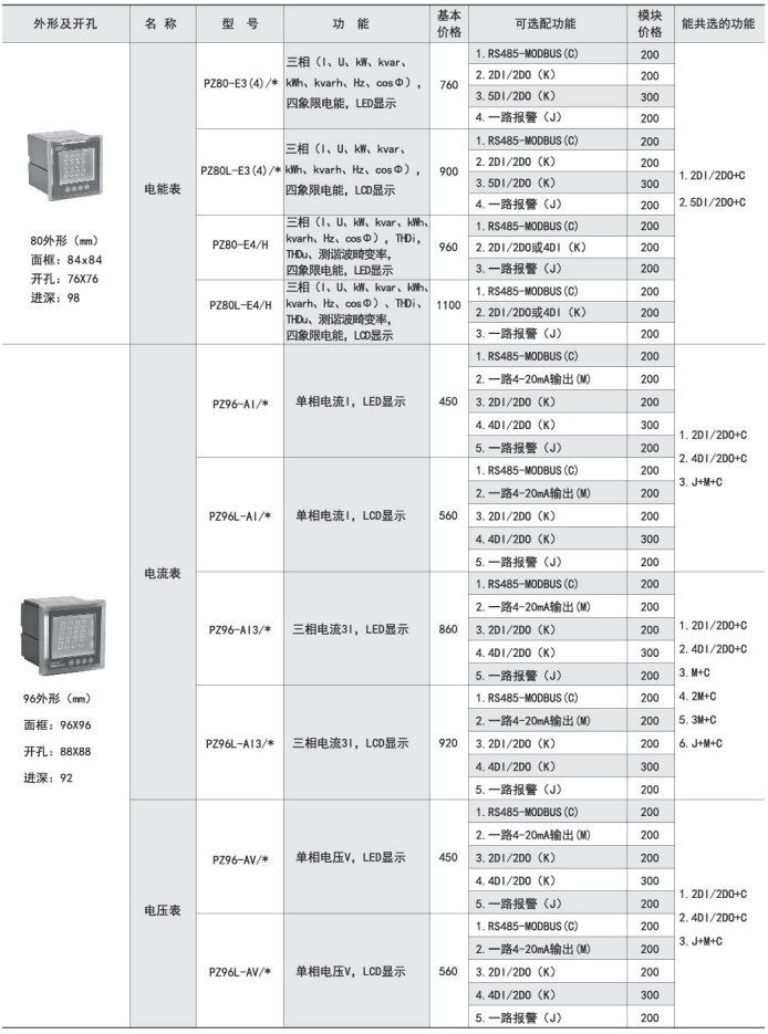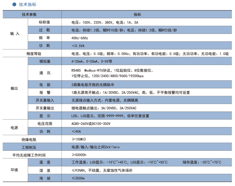 該系列儀表采用交流采樣技術(shù),能分別測(cè)量電網(wǎng)中的電流、電壓、功率、功率因數(shù)和電能等參數(shù)??蓭S485通訊接口、模擬量數(shù)據(jù)轉(zhuǎn)換、開(kāi)關(guān)量輸入/輸出等功能,實(shí)現(xiàn)電力參數(shù)、電氣元件工作狀態(tài)的遠(yuǎn)程傳輸,便于后臺(tái)監(jiān)控系統(tǒng)集中檢測(cè)。