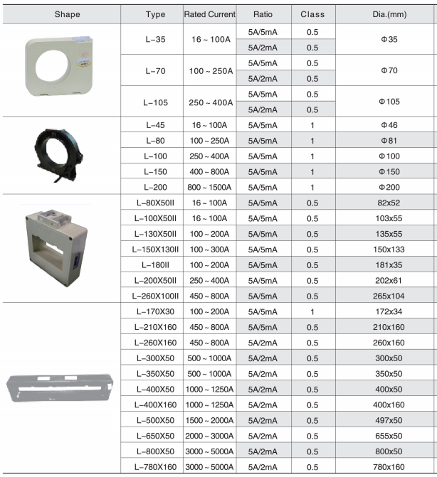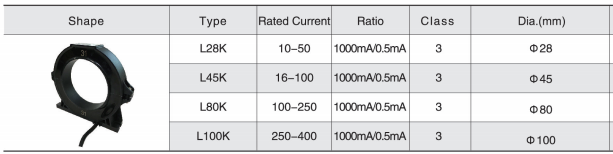 3.剩余電流互感器選型 Model Selection of Residual Current Relay