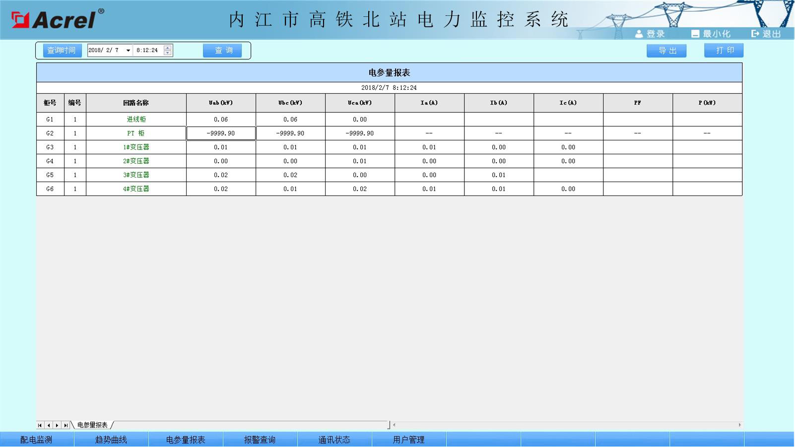 報(bào)表具有自由設(shè)置查詢時(shí)間實(shí)現(xiàn)日、月、年的電能統(tǒng)計(jì),數(shù)據(jù)導(dǎo)出和報(bào)表打印等功能。