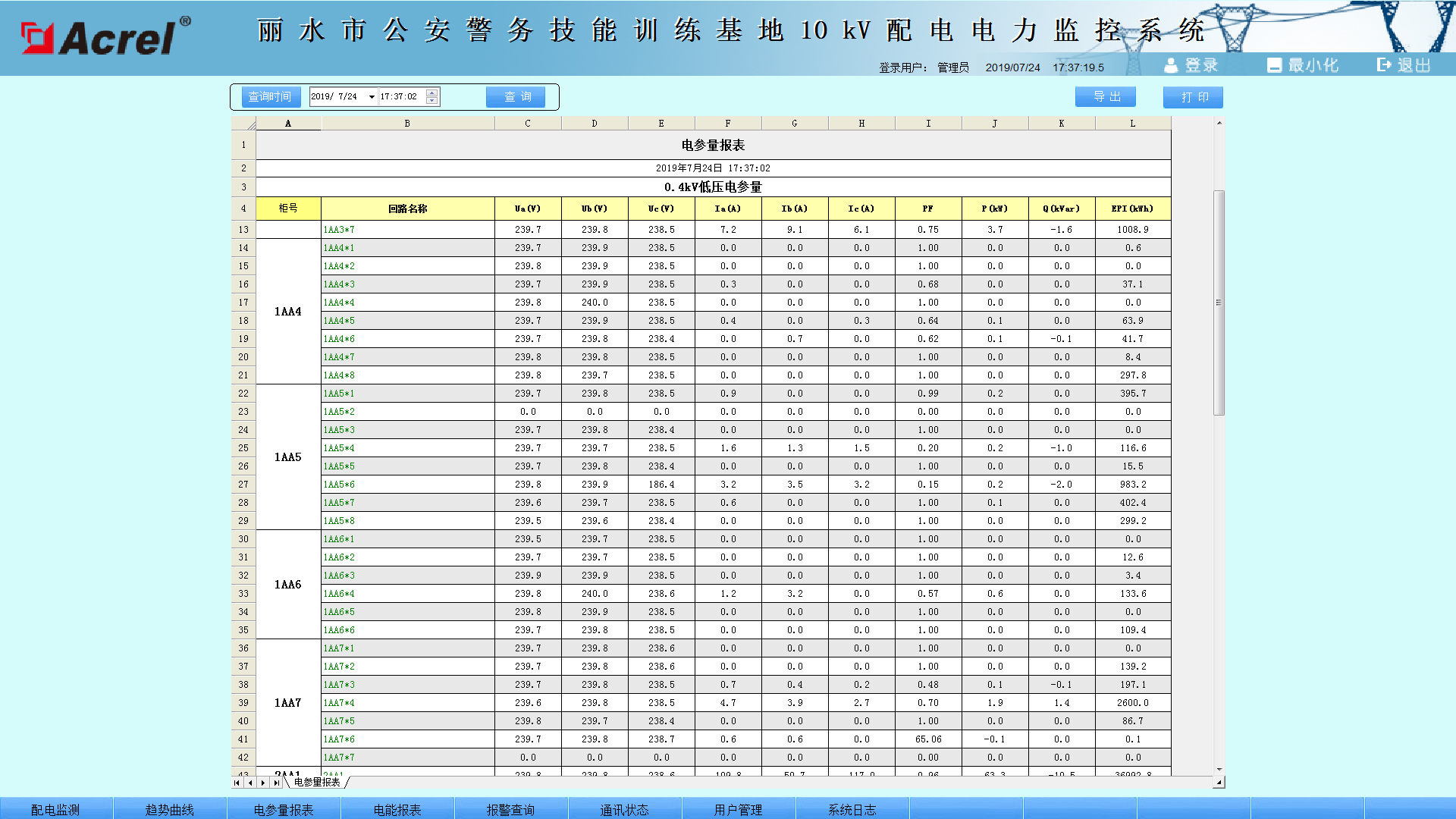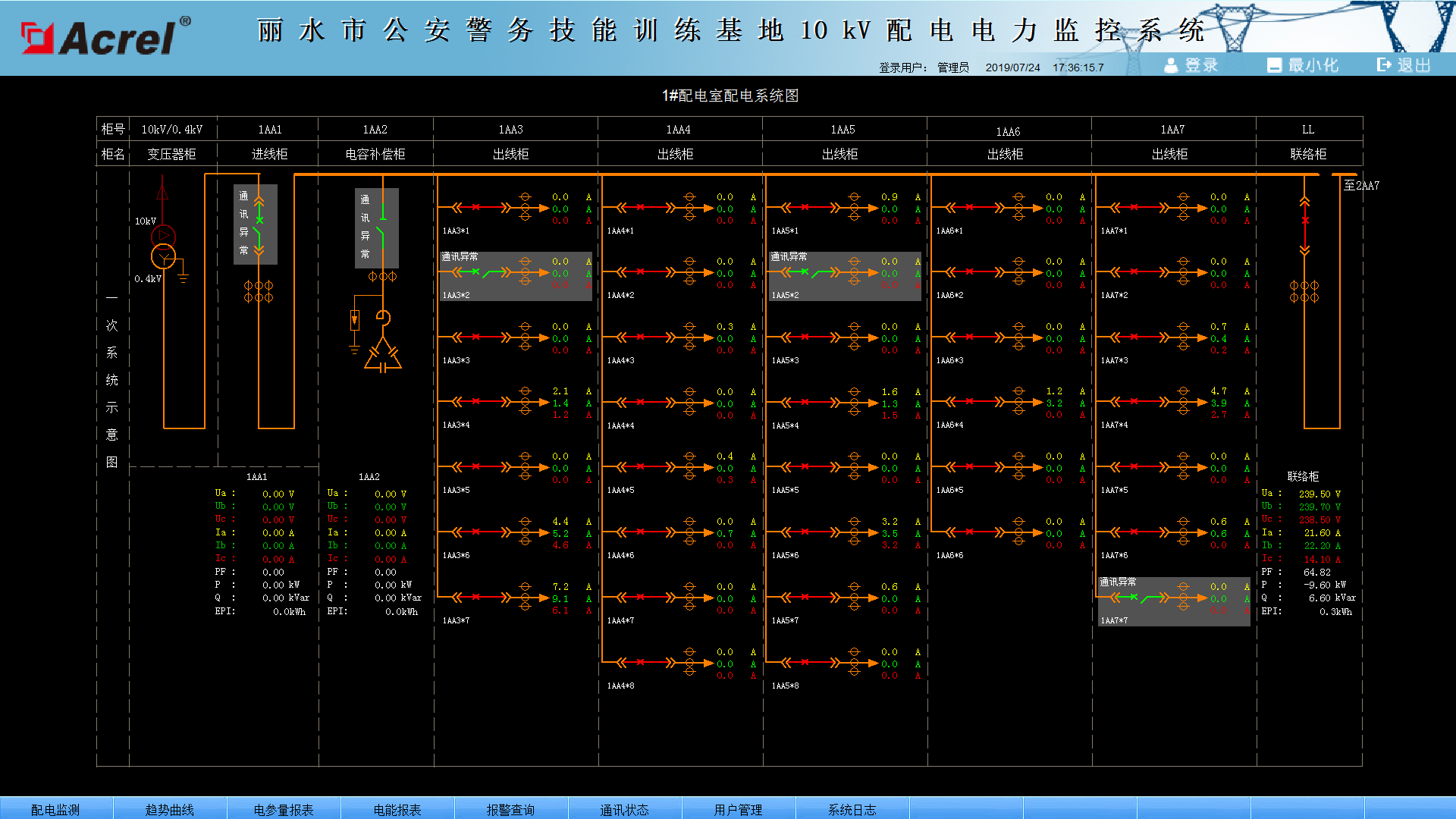 麗水市公安警務技能訓練基地10kV配電電力監(jiān)控系統(tǒng)實現(xiàn)用電數(shù)據的實時采集、存儲、顯示、導出。項目從配電系統(tǒng)的搭建,到后期調試,系統(tǒng)數(shù)據的核對,整個過程我方提供了相應階段的技術支持。本系統(tǒng)在設計、安裝、調試的同時,也是對建筑的配電架構的詳細梳理,通過對用能情況的細致分類,明確建筑內配電體系的運作模式和狀態(tài)。滿足了客戶相關的定制化需求,為客戶提供了多樣性的數(shù)據分析處理方式,以及導出方式,便于后期的相關管理,提高服務的效率。