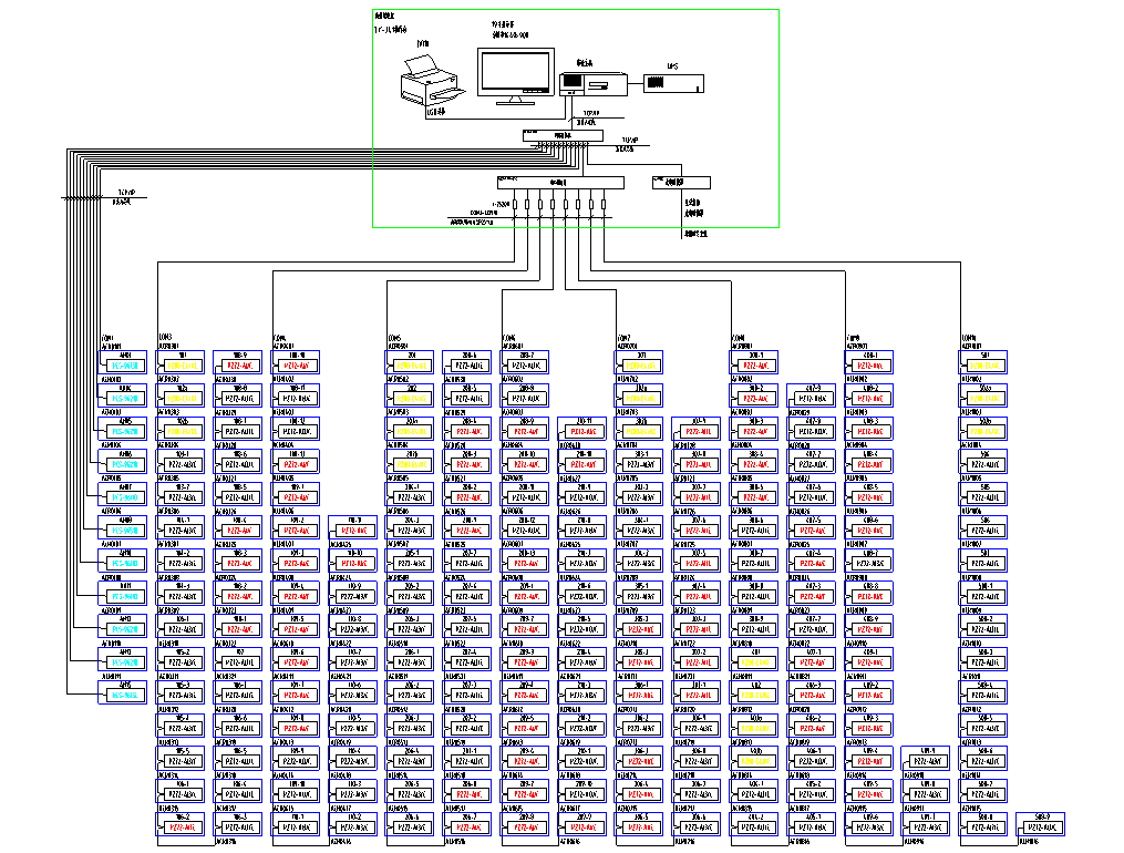 系統(tǒng)通訊結(jié)構(gòu)示意圖,主要顯示系統(tǒng)的組網(wǎng)結(jié)構(gòu),系統(tǒng)采用分層分布式結(jié)構(gòu),同時(shí)監(jiān)測間隔層設(shè)備的通信狀態(tài)。紅色表示通訊正常,綠色表示通訊故障。見圖(4)。