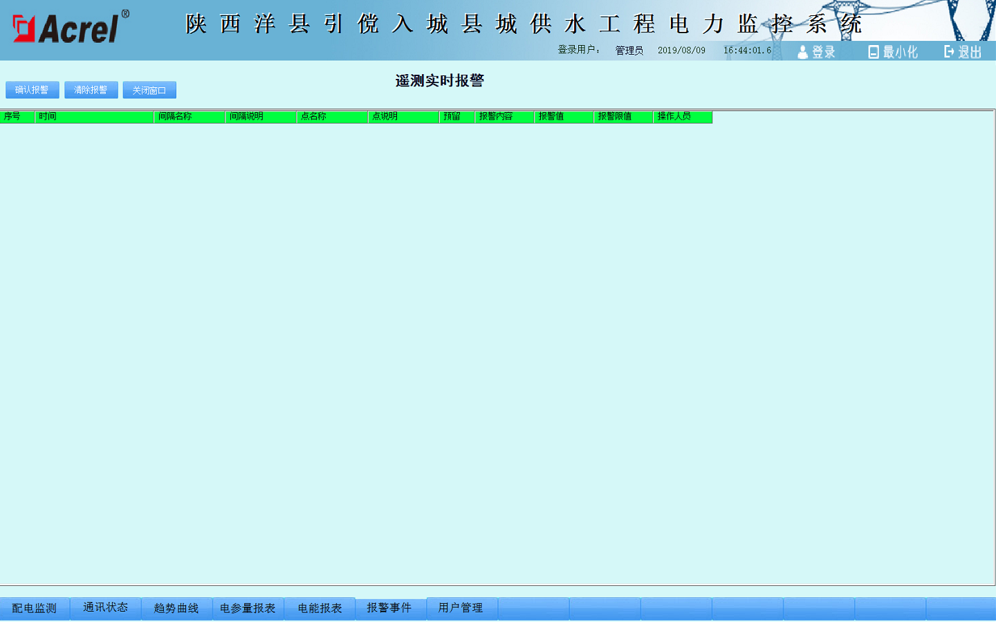 事件告警記錄功能,主要完成對(duì)查詢時(shí)間段內(nèi)出現(xiàn)的報(bào)警信息事件記錄以及發(fā)生時(shí)間,為值班人員提供依據(jù)并且分析事故發(fā)生的原因,如下圖所示:
