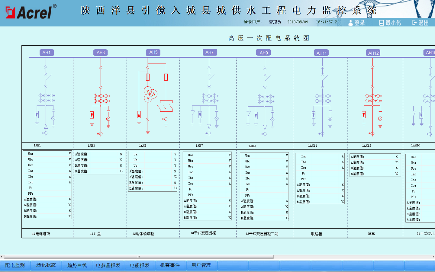 0 概述 陜西洋縣引儻入城縣城供水工程為解決城區(qū)供水不足等問題,從新水源地引水至凈水廠,廠區(qū)新建的配水井、混合絮凝沉淀池、V型濾池、清水池、吸水井、送水泵房、加藥加氯間、自動(dòng)化控制系統(tǒng)等生產(chǎn)及附屬工程也全部建成并投入使用。工程設(shè)計(jì)日供水2萬立方米,可滿足城區(qū)10多萬群眾的日常生活用水。為更好地了解能源消耗情況,并監(jiān)控配電可靠性,現(xiàn)需要在配電房增設(shè)電力監(jiān)控系統(tǒng)一套,系統(tǒng)監(jiān)控范圍包含現(xiàn)場(chǎng)30塊多功能表計(jì)。 本次項(xiàng)目主要涉及陜西洋縣引儻入城縣城供水工程中的配電房出線內(nèi)的多功能電表及高壓保護(hù)裝置,其中值班室置于監(jiān)控值班室。
