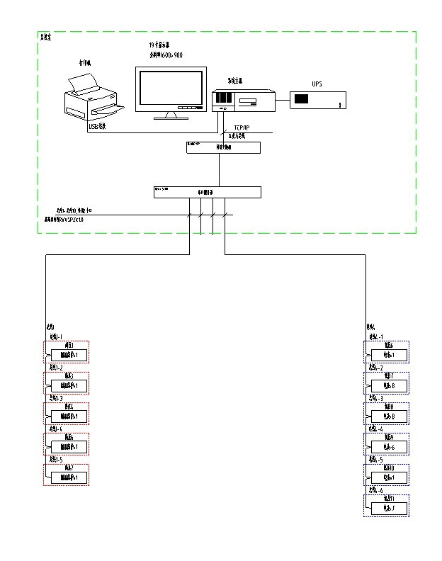 系統(tǒng)通訊結(jié)構(gòu)示意圖,主要顯示系統(tǒng)的組網(wǎng)結(jié)構(gòu),系統(tǒng)采用分層分布式結(jié)構(gòu),同時(shí)監(jiān)測間隔層設(shè)備的通信狀態(tài)。紅色表示通訊正常,綠色表示通訊故障。見圖(4)。 圖(4)系統(tǒng)通訊結(jié)構(gòu)示意圖
