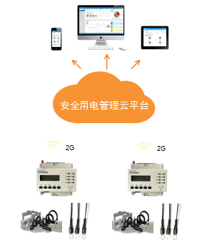 各場所配電現(xiàn)場配電柜內(nèi)安裝漏電火災探測器、剩余電流互感器、溫度傳感器以及電流互感器,用于采集并監(jiān)測當前電氣回路運行狀況,當漏電火災探測器加監(jiān)測到電氣回路中剩余電流、運行電流、溫度、電壓等參數(shù)超標時,馬上發(fā)出聲光報警信號,并將信號通過無線進一步上傳至云端服務器,通過云端服務器提醒智能調(diào)度技術(shù)人員;每個探測器內(nèi)配置一臺無線傳輸模塊,無線傳輸采用2G網(wǎng)絡傳輸數(shù)據(jù)接收來自漏電火災探測器的電氣參數(shù),并進一步上傳至云端服務器;云端服務器通過租借阿里云服務器的模式,安裝安全用電平臺軟件,智能調(diào)度技術(shù)人員通過客戶端(本地電腦、手機APP、短信)接收平臺軟件提供的各種運行數(shù)據(jù)以及報警信息,很快提供運維服務。