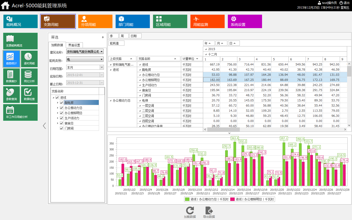 統(tǒng)計(jì)各支路當(dāng)年每月用能及去年同期用能;