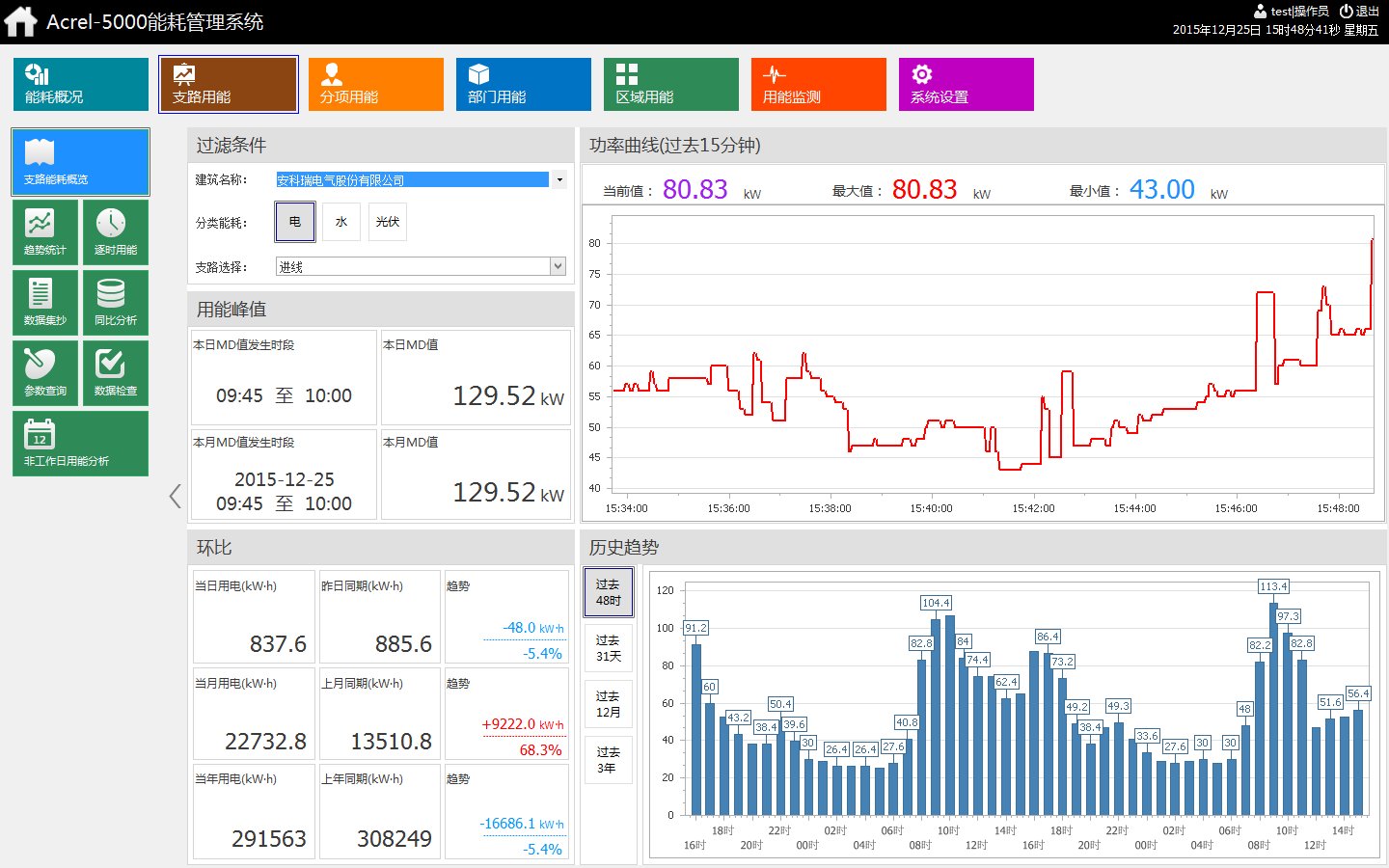 反映某分類能耗過去48小時(shí)、過去31天、過去12個(gè)月、過去3年的用能趨勢(shì);