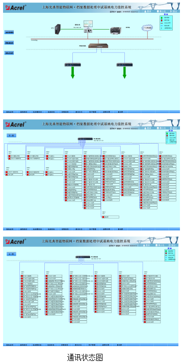 安科瑞Acrel-2000電力監(jiān)控系統(tǒng)支持實(shí)時(shí)監(jiān)視接入系統(tǒng)的各設(shè)備的通訊狀態(tài),能夠完整的顯示整個(gè)系統(tǒng)網(wǎng)絡(luò)結(jié)構(gòu);可在線診斷設(shè)備通訊狀態(tài),發(fā)生網(wǎng)絡(luò)異常時(shí)能自動(dòng)在界面上顯示故障設(shè)備或元件及其故障部位。從而方便運(yùn)行維護(hù)人員實(shí)時(shí)掌握現(xiàn)場(chǎng)各設(shè)備的通訊狀態(tài),及時(shí)維護(hù)出現(xiàn)異常的設(shè)備,保證系統(tǒng)的穩(wěn)定運(yùn)行。