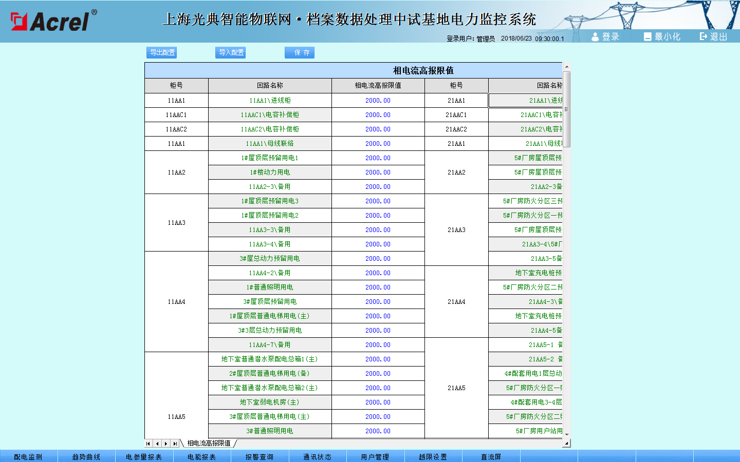 在當(dāng)今配電設(shè)施的應(yīng)用中,變電所的配電安全性至關(guān)重要,本文介紹的Acrel-2000電力監(jiān)控系統(tǒng)在上海光典智能物聯(lián)網(wǎng)·檔案數(shù)據(jù)處理中試基地的應(yīng)用,可以實(shí)現(xiàn)對(duì)變電所供配電回路用電的實(shí)時(shí)監(jiān)控,不僅能顯示回路用電狀況,還具有網(wǎng)絡(luò)通訊功能,可以與串口服務(wù)器、計(jì)算機(jī)等組成電力監(jiān)控系統(tǒng)。系統(tǒng)實(shí)現(xiàn)對(duì)采集數(shù)據(jù)的分析、處理,實(shí)時(shí)顯示變電所內(nèi)各配電回路的運(yùn)行狀態(tài),對(duì)分合閘、負(fù)載越限具有彈出報(bào)警對(duì)話框、語(yǔ)音提示、短信報(bào)警燈,并生成各種電能報(bào)表、分析曲線、圖形等,便于電能的遠(yuǎn)程抄表以及分析、研究,該系統(tǒng)運(yùn)行安全、可靠、穩(wěn)定,為解決用電問題提供了真實(shí)可靠的依據(jù)。