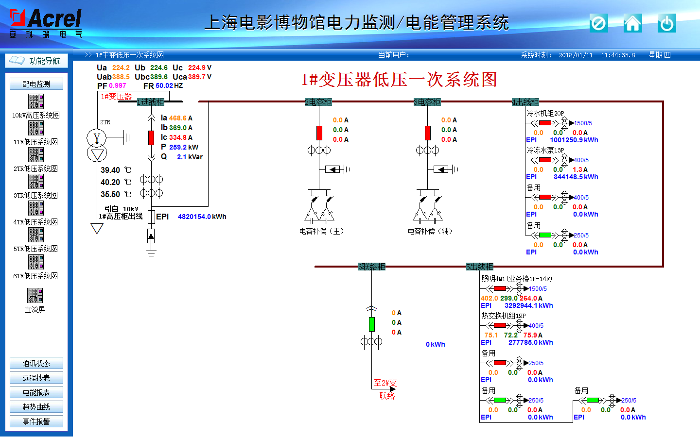 在當(dāng)今配電設(shè)施的應(yīng)用中,公建項(xiàng)目的配電安全性至關(guān)重要,本文介紹的Acrel-3000電能管理系統(tǒng)在上海電影博物館暨電影藝術(shù)研究所業(yè)務(wù)大樓的應(yīng)用,可以實(shí)現(xiàn)對(duì)配電所供配電回路用電的實(shí)時(shí)監(jiān)控,不僅能顯示回路用電狀況,還具有網(wǎng)絡(luò)通訊功能,可以與通訊管理機(jī)、計(jì)算機(jī)等組成電能管理系統(tǒng)。系統(tǒng)實(shí)現(xiàn)對(duì)采集數(shù)據(jù)的分析、處理,實(shí)時(shí)顯示配電所內(nèi)各配電回路的運(yùn)行狀態(tài),對(duì)分合閘、負(fù)載越限具有彈出報(bào)警對(duì)話框、語(yǔ)音提示、短信報(bào)警燈,并生成各種電能報(bào)表、分析曲線、圖形等,便于電能的遠(yuǎn)程抄表以及分析、研究。