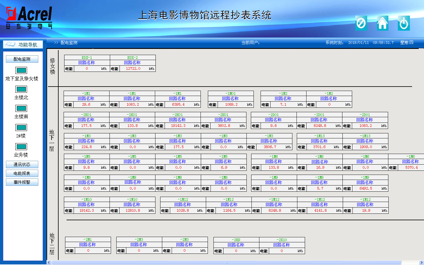 關(guān)鍵詞:上海電影博物館暨電影藝術(shù)研究所業(yè)務(wù)大樓;配電;智能電力儀表;Acrel-3000;電能管理系統(tǒng);