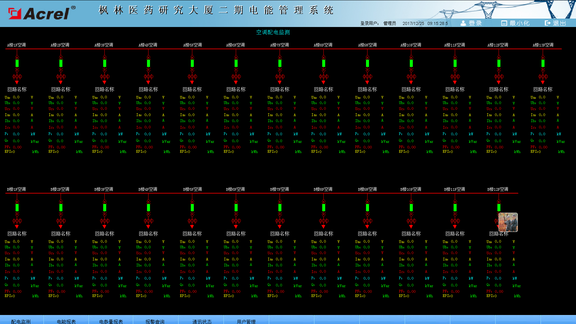 在當今配電設施的應用中,公建辦公大樓項目的配電安全性至關重要,本文介紹的Acrel-3000電能管理系統(tǒng)在楓林醫(yī)藥研究大廈二期的應用,可以實現(xiàn)對樓層配電回路用電的實時監(jiān)控,不僅能顯示回路用電狀況,還具有網(wǎng)絡通訊功能,可以與通訊管理機、計算機等組成電能管理系統(tǒng)。系統(tǒng)實現(xiàn)對采集數(shù)據(jù)的分析、處理,實時顯示配電回路的運行狀態(tài),對分合閘、負載越限具有彈出報警對話框、語音提示、短信報警燈,并生成各種電能報表、分析曲線、圖形等,便于電能的遠程抄表以及分析、研究。