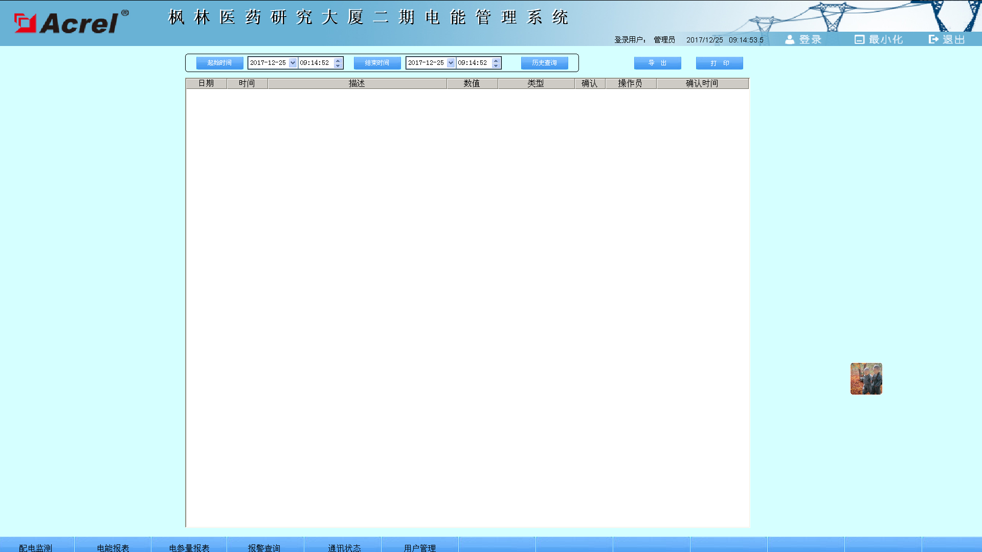 可通過在抄表時間選擇框中設定好抄表時間,點擊抄表按鈕,在查詢表格中顯示查詢到的配電回路電參量