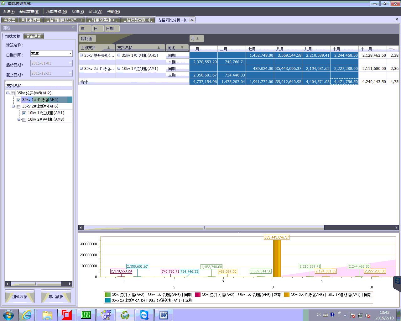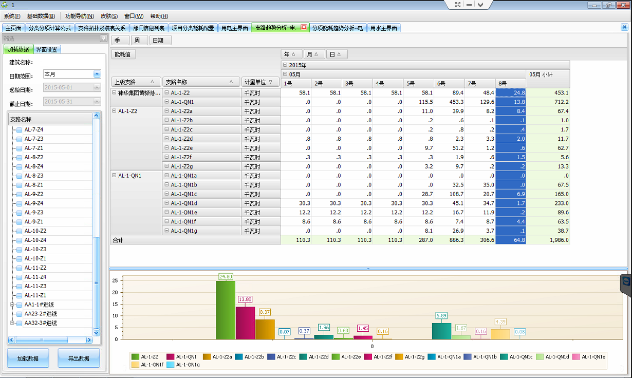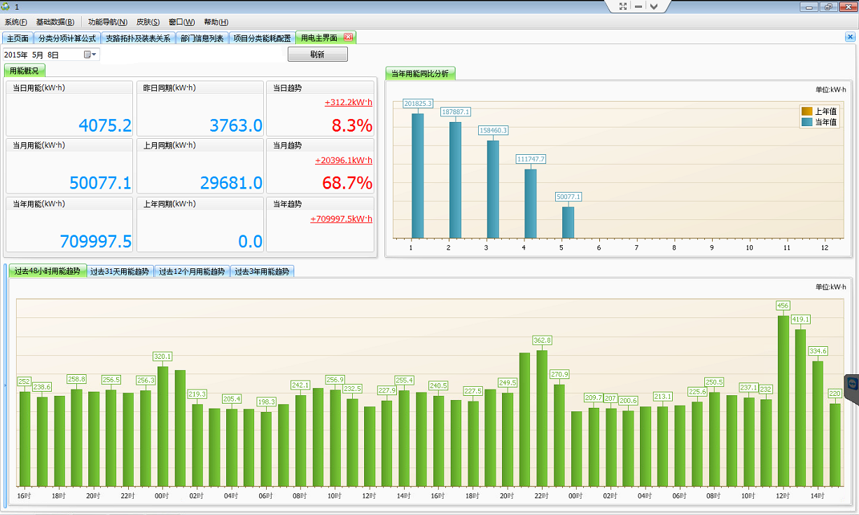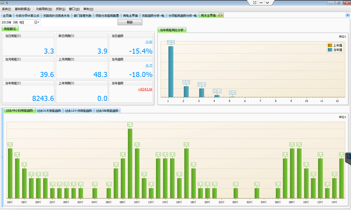 統(tǒng)計(jì)各支路當(dāng)年每月用能及去年同期用能;